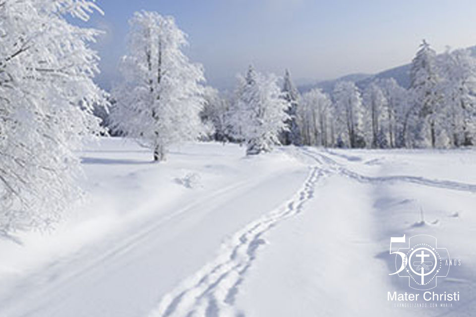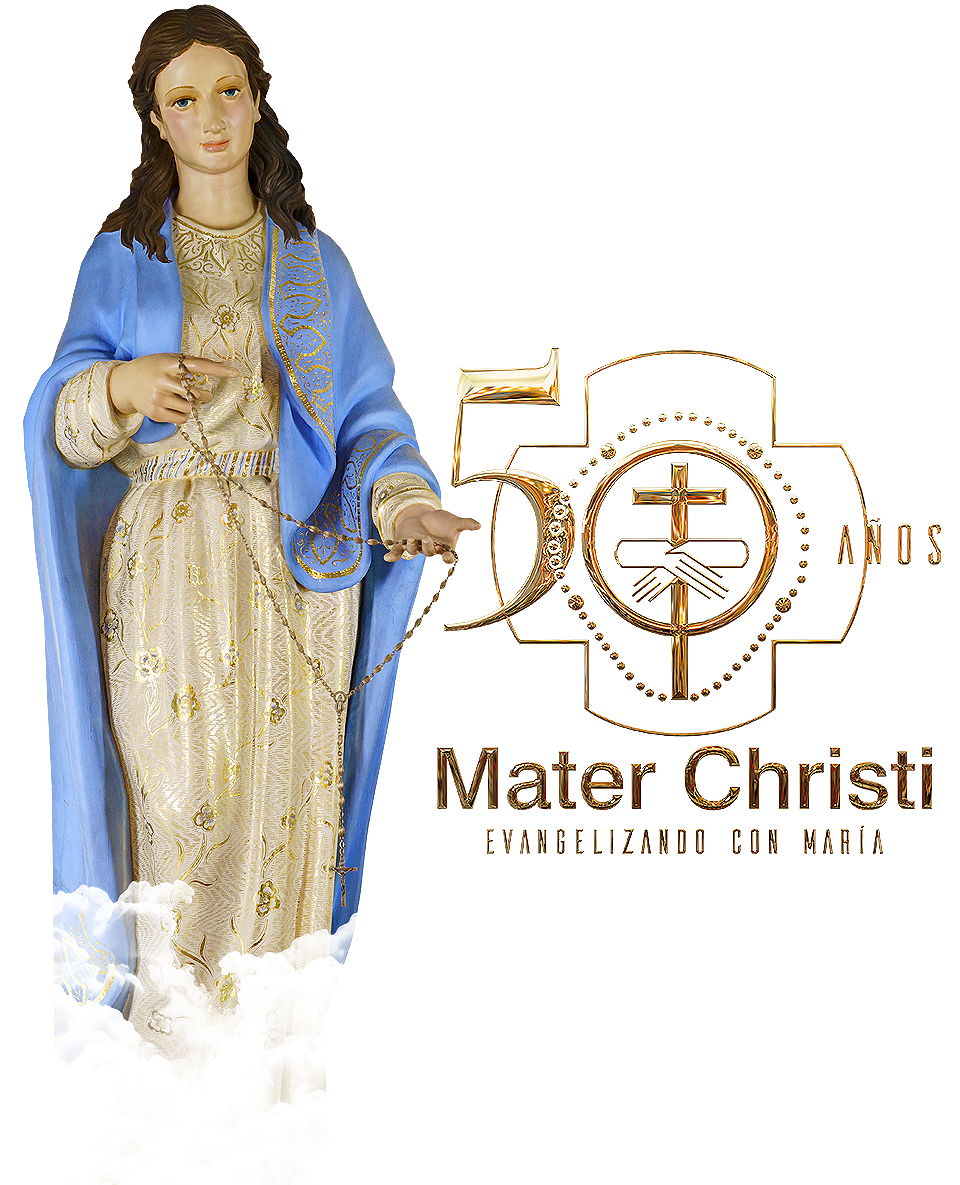 Mira a esta parcela de MATER CHRISTI que, al cumplirse el 50º Aniversario de su fundación, quiere renovar, de la mano de María, nuestra Madre y nuestra Guía, su entrega a la evangelización que se le confió en tu Hijo Jesucristo.