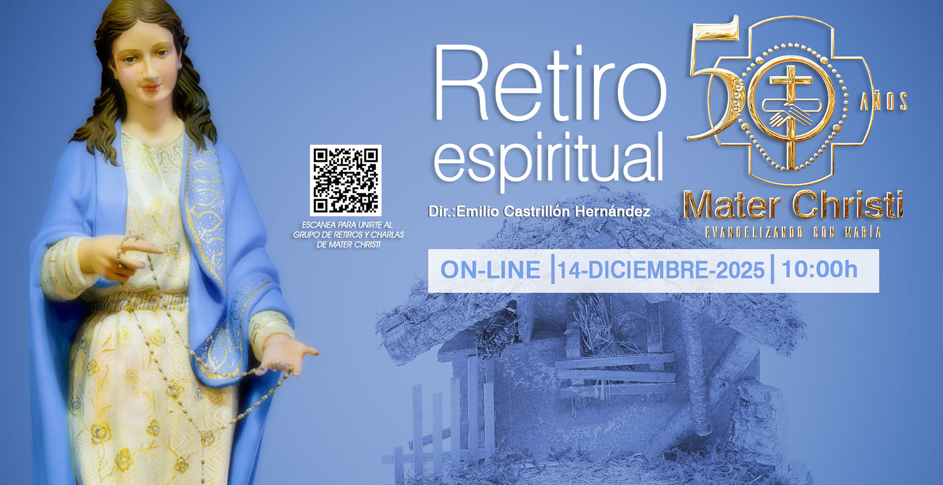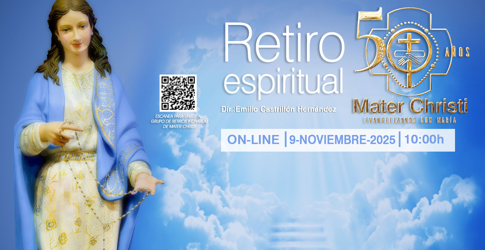 Mensualmente, en el 2º Domingo, Mater Christi celebra Retiros Espirituales de forma On-Line.